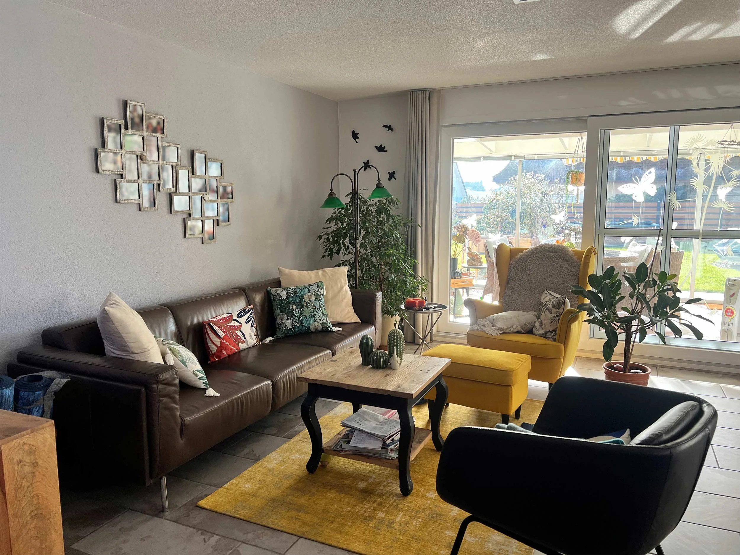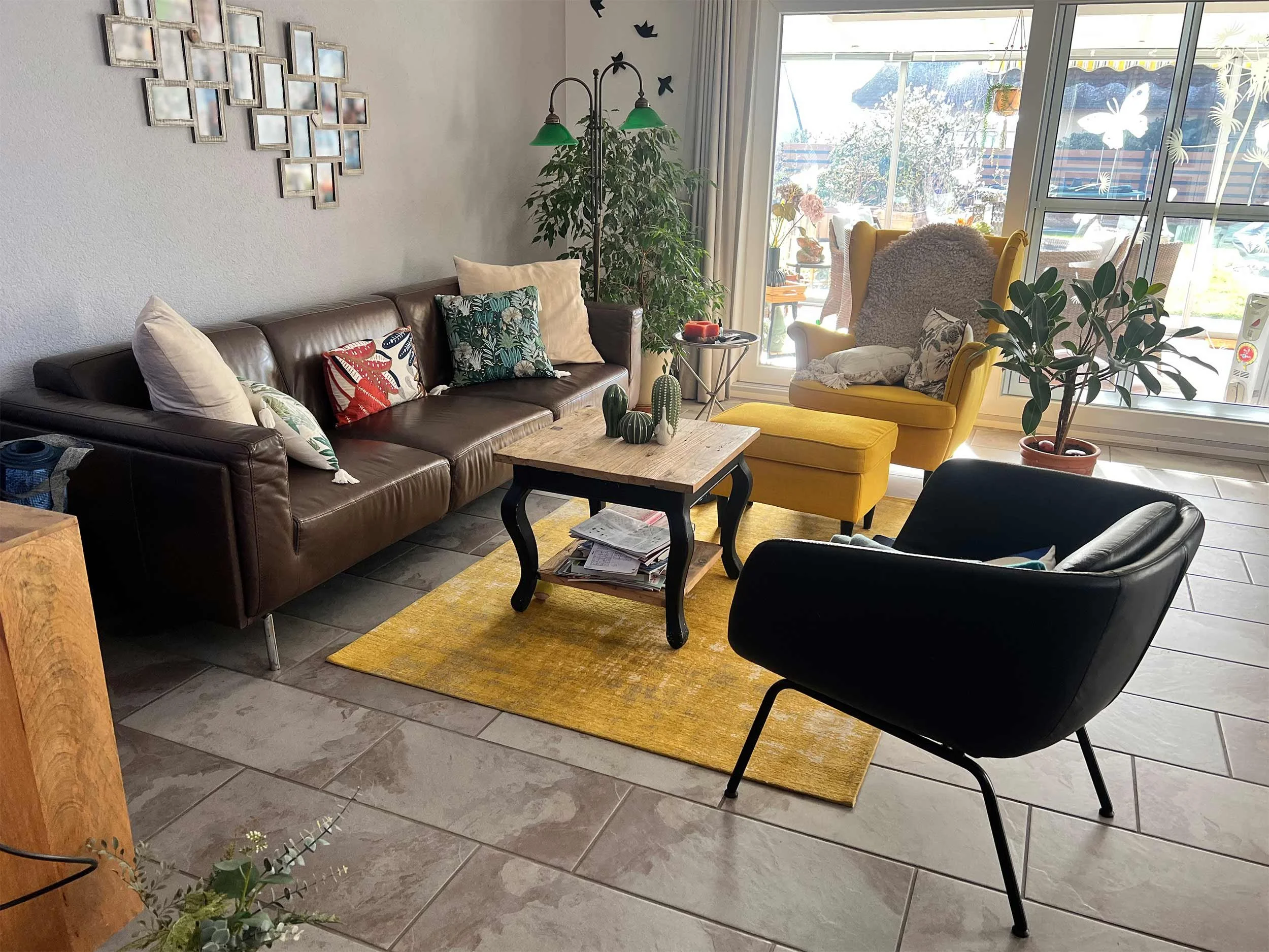 Hier siehst du nur, ob die Farbe zum Sofa passt, aber nicht, wie sie im Raum wirkt.